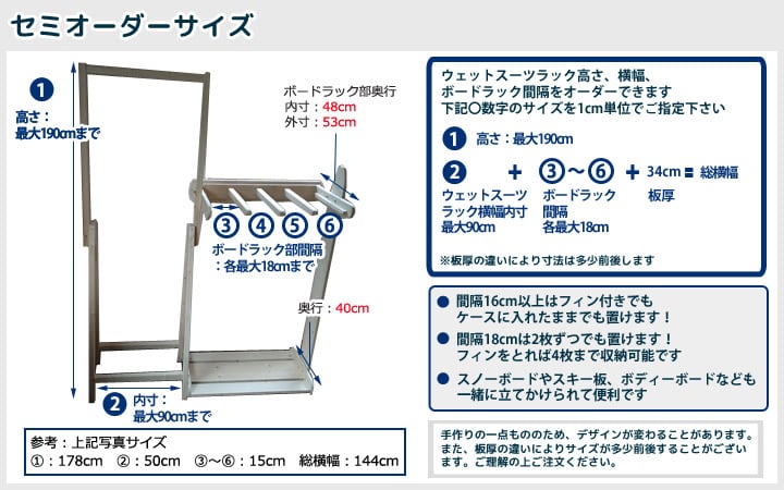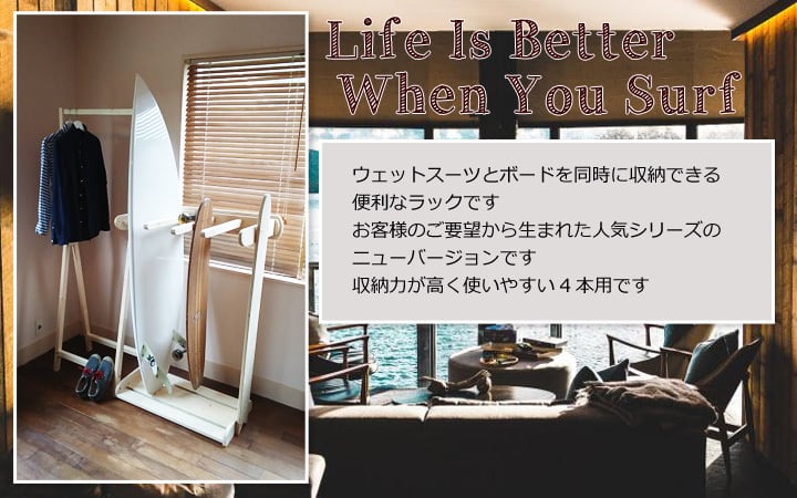 スキーやスノボー、サーフボードなどと一緒にハンガーラックがあるためこの1台でショップのインテリアの様に大切なボードが収納できます!