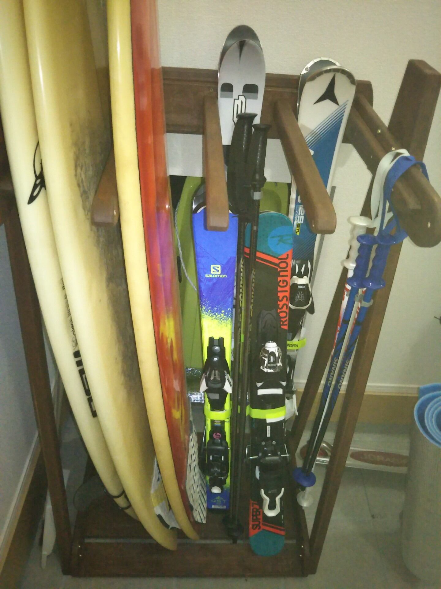 自宅で大好きなサーフィンやスノーボードを愛でることができるこのラックは、思い出の一部をいつでも感じることができる素敵なアイテムです。ぜひ、あなたの大切な道具をこのラックで美しく保管してください!