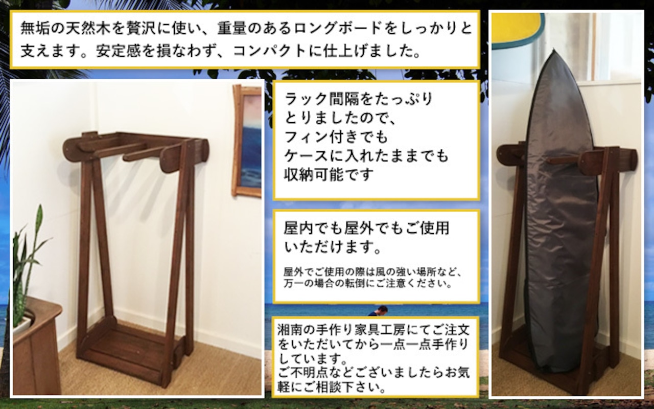 ロングボードをショップのディスプレイの様にコンパクトに収納できるラックを作りました!